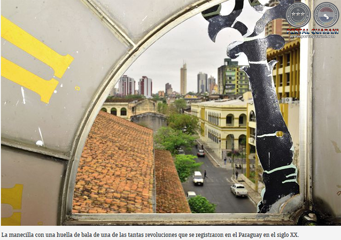“Tiene huellas de balas de las revoluciones. En sus paredes también existen varios huecos de balas y en la misma manecilla que da hacia el este. Cada vez que había revolución, incluso se ubicaban francotiradores aquí. En una de esas apareció un cuerpo incrustado en el reloj (revoluciones de 1908 y 1923)”, comenta Rafael.