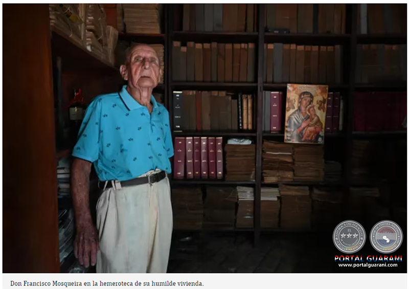 Don Francisco Mosqueira es un adicto a la lectura de diarios y revistas. En una de las habitaciones de su humilde vivienda del barrio Sajonia tiene montada una verdadera hemeroteca con el diario ABC desde el primer día de aparición el 8 de agosto de 1967. Los tiene muy bien encuadernados y organizados. También tiene otras publicaciones como Última Hora.