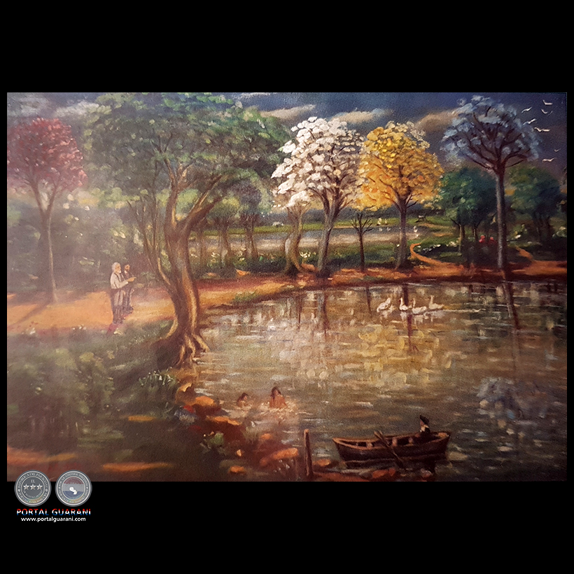 Obra: PAISAJE CON LAGUNA Y PERSONAS PESCANDO