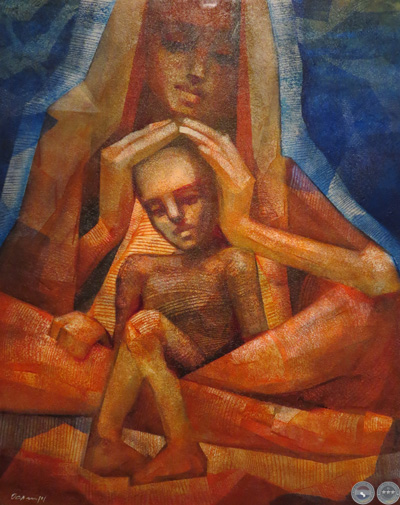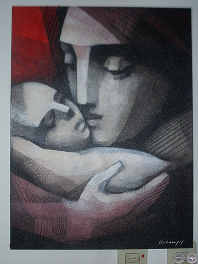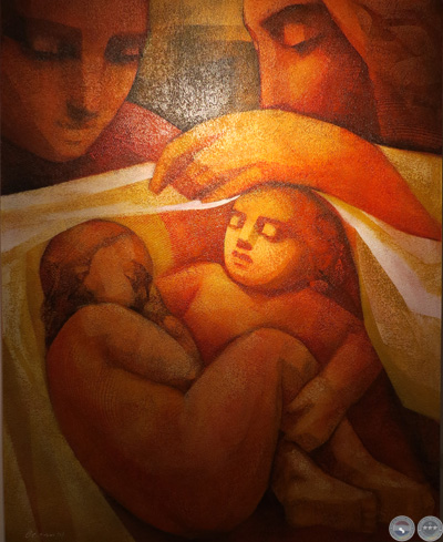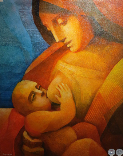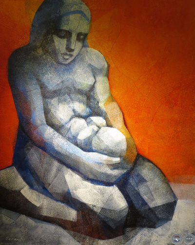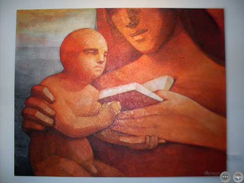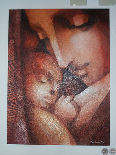 La muestra explora nuevas configuraciones en la temática de la maternidad, que el artista viene desarrollando hace tiempo. Cada imagen representa la relación entre el ser frágil y vulnerable amparado en la fuerza protectora de la madre. El concepto refleja la célula básica de la sociedad.