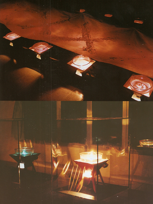 CON ESTA INSTALACIÓN cuyo título en guaraní, TATA ARI, se traduce como "SOBRE EL FUEGO", Jorge Ocampos incursiona en lo conceptual. Articulando elementos de procedencia diversa, el artista elabora un discurso poético no despojado de crítica social.