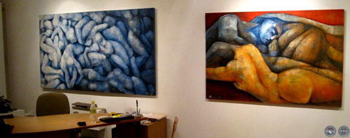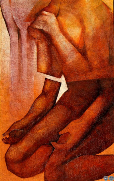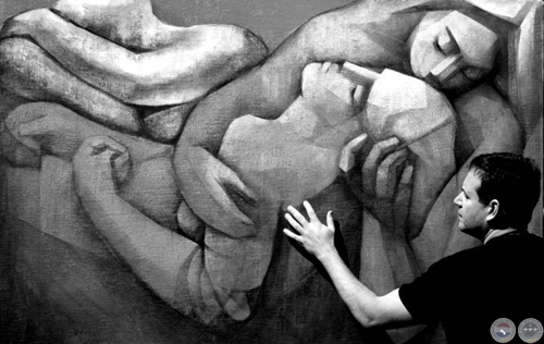 Después, los cuerpos se dislocan, las posturas se vuelven tan complejas que es difícil identificar sus partes y sus formas hasta llegar a fragmentarse como rompecabezas o a recomponerse y reorganizarse, casi en forma de esculturas inconclusas o en una abigarrada superposición.