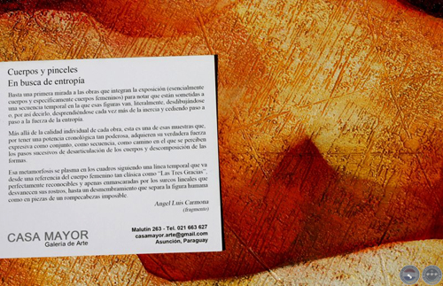 El 6 de septiembre se inauguró la muestra “Entropía” de Jorge Ocampos en Casa Mayor Galería de Arte (Malutín 263 casi Mcal. López). La muestra está compuesta de 10 obras realizadas en acrílico y textura sobre tela. El acceso es libre y gratuito.