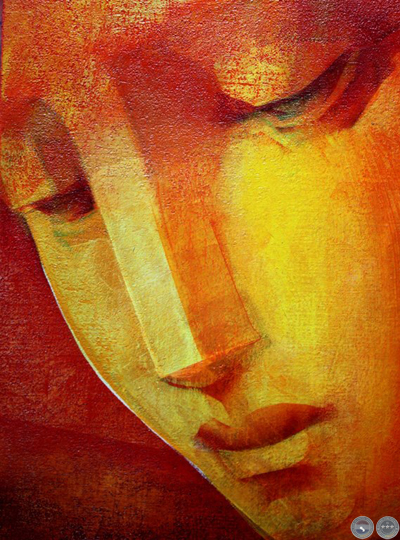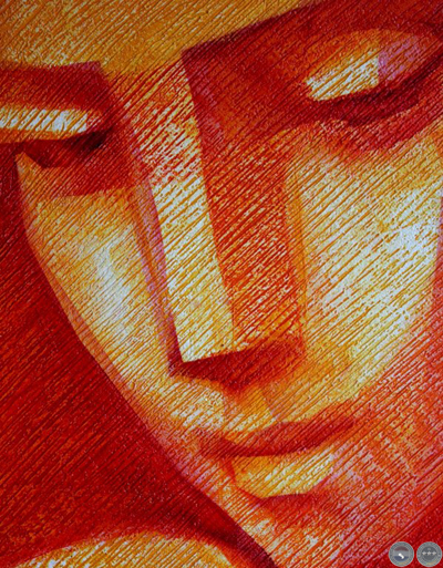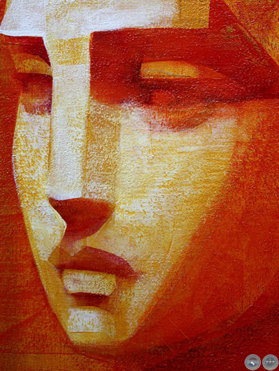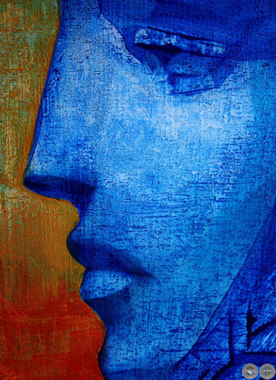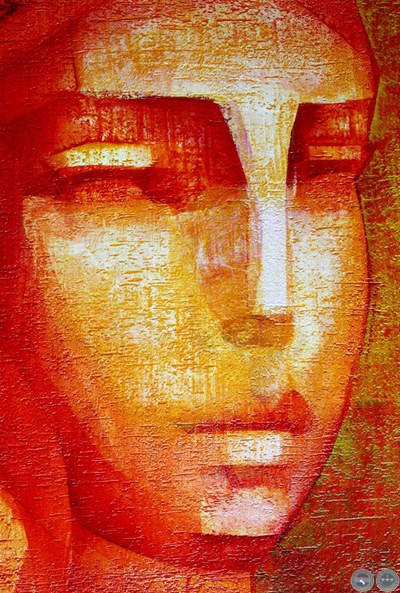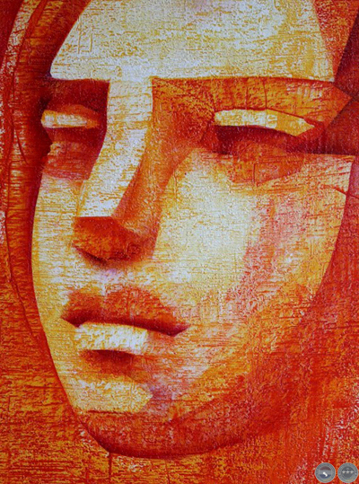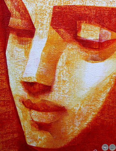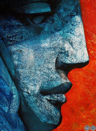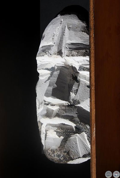 e intervenida con un rostro esculpido en yeso humedo.