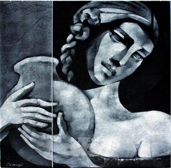 “El carácter flemático de uno, el melancólico de otro, el temperamento nervioso de aquel prócer, configuran una galería –un fresco podríamos decir— de una historia signada por la sicología de estos personajes. El soldado paraguayo –típico ejemplar de la Guerra del Chaco— y la mujer con atuendo folklórico y cántaro a la cintura, también se confrontan como polos masculino-femenino, como parejas eróticas complementarias. La naturaleza fálica del soldado es evidente, mientras que el elemento genésico está representado por el cántaro: útero de barro primordial”, expresa González Real.