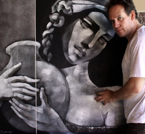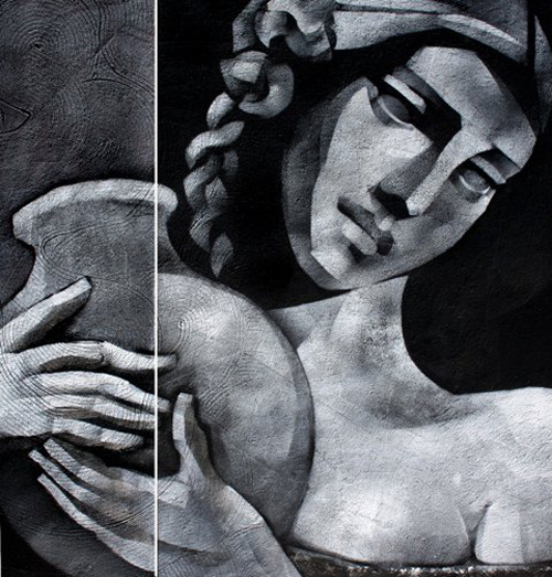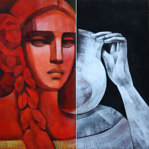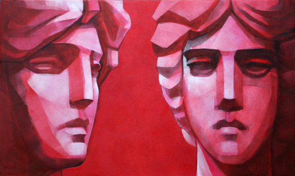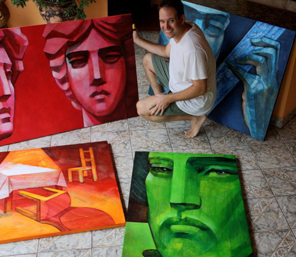 ... en sus últimos cuadros ha tomado como modelo las ilustraciones de los billetes de uso corriente y ha creado con las imágenes de Caballero, Francia, López y Roque de Santa Cruz pinturas que, de alguna manera, expresan los humores y la caracterología de estos personajes emblemáticos de nuestra historia. El carácter flemático de uno, el melancólico de otro, el temperamento nervioso de aquel prócer, configuran una galería – un fresco podríamos decir- de una historia signada por la sicología de estos personajes.