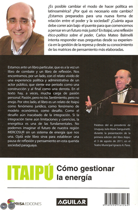 Itaipú es el proyecto hidroeléctrico que más energía produce en el planeta, pero no es solo eso. Es un símbolo de la relación de fuerzas entre los países sudamericanos, y es también una causa nacional para los pueblos de Paraguay y Brasil. Durante dieciséis meses, Carlos Mateo Balmelli fue director paraguayo de la entidad binacional Itaipú. En ese período, vivió de cerca la complejidad de los procesos de cambio, acercó las posiciones de los dos países y, al mismo tiempo, se desencantó del rumbo actual de la conducción política en su tierra.