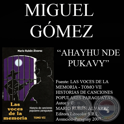 Un ejemplo de que la interpretación del contenido de una pieza poética musicalizada sigue un rumbo distinto al que originalmente le dio su autor es AHAYHU NDE PUKAVY, con letra y música de MIGUEL GÓMEZ, nacido el 29 de mayo de 1941 en Villarrica.