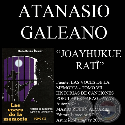 «Se me quedó entonces en el aire la música y no sabía qué hacer. Sin embargo, cuando me iba a casa, de Asunción al barrio San Isidro, de Lambaré, entre las 3 y las 4 de la tarde, me llegó a la mente la letra. Paraba mi auto un rato y copiaba lo que me venía a la cabeza. Llegué a casa obsesionado. No recuerdo si saludé. Lo cierto es que me enfrasqué en mi tarea y saqué una polka-canción que llamé JOAYHUKUE RATĨ pensando en una situación ideal, no en algo concreto de mi historia personal. Más adelante le cambié tres o cuatro palabras y la grabé en 1998 con CÉSAR CATALDO y otros músicos», relata el que heredó de su abuelo materno CECILIO GALEANO el arte de la guitarra y el canto.
