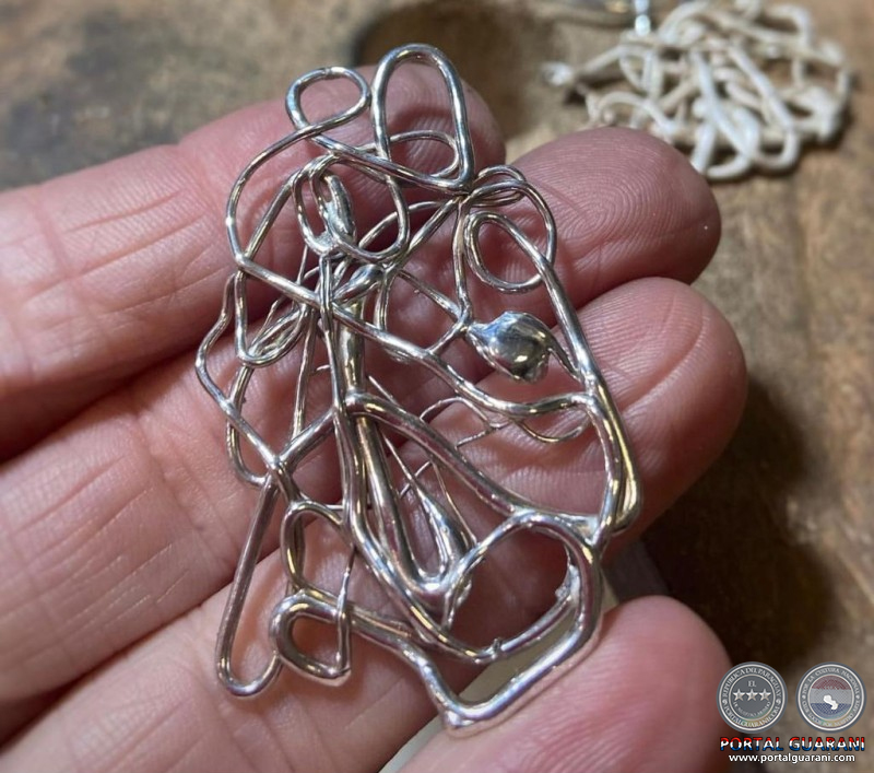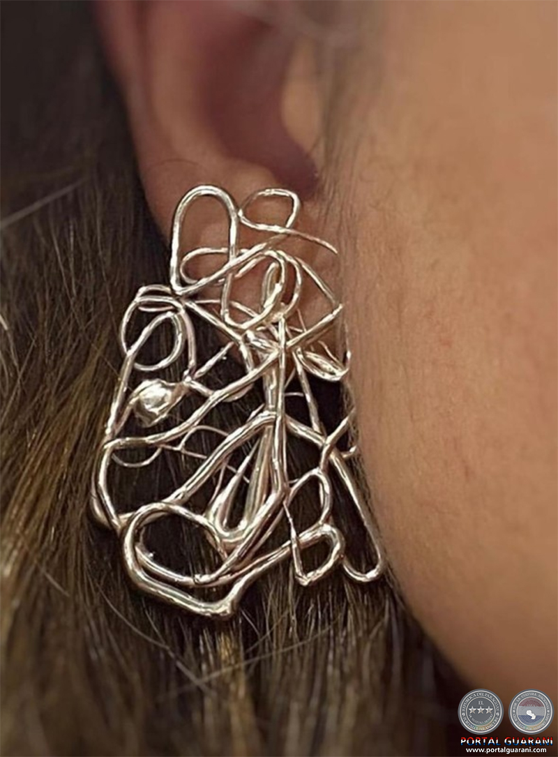 En cuanto a las piezas de joyería la artista le confiere un carácter de amuleto o de reliquia y siente la urgencia de poner nombre a los anillos, aros, collares según rasgos humanizados, son íconos identitarios que fuerzan al metal a salirse de la mera lógica ornamental para acariciar el cuerpo. En los lienzos toma protagonismo lo gestual de la línea, la maraña se enerva, se desahoga, se libera como estela existencial”.
