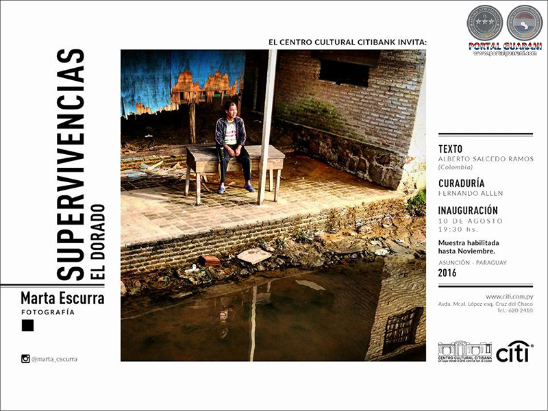 "Sobrevivencias/El Dorado” se denomina la muestra fotográfica individual de Marta Escurra que tendrá apertura el miércoles 10 de agosto, a las 19:30, en el Centro Cultural Citibank, sito en Mariscal López 3794 y Cruz del Chaco.