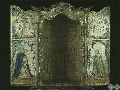 Puertas con pintura interior de un par de ángeles en el tercio superior de cada puerta,