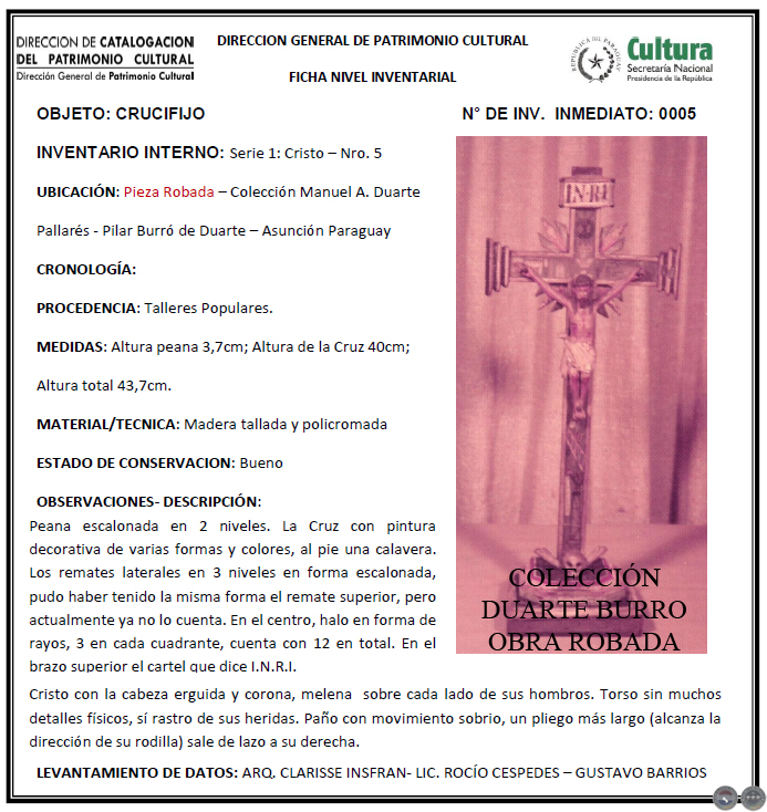 CUALQUIER INFORMACIÓN SOBRE LAS IMÁGENES MISIONERAS ROBADAS