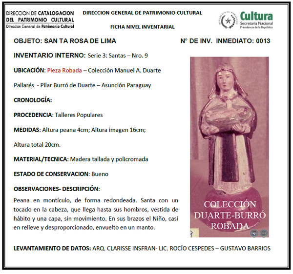 CUALQUIER INFORMACIÓN SOBRE LAS IMÁGENES MISIONERAS ROBADAS