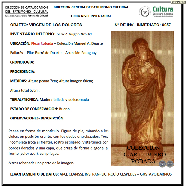 CUALQUIER INFORMACIÓN SOBRE LAS IMÁGENES MISIONERAS ROBADAS