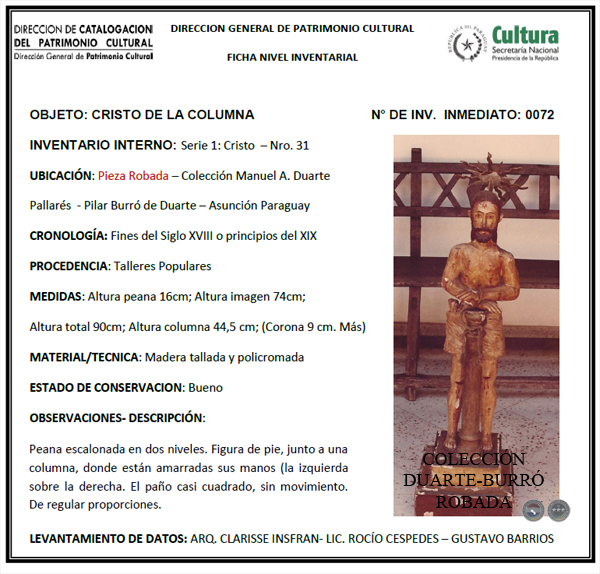CUALQUIER INFORMACIÓN SOBRE LAS IMÁGENES MISIONERAS ROBADAS