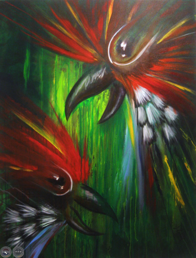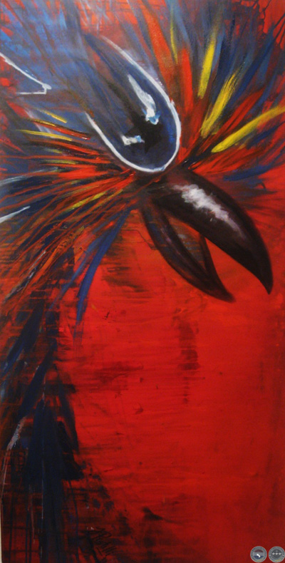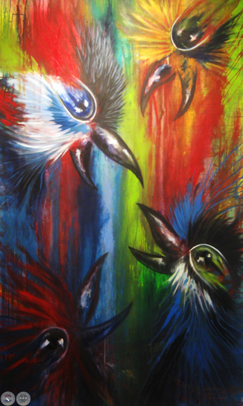 "Estas aves gritan a modo de protesta por la depredación de los bosques, es como un grito interior de impotencia de todas las personas que nos preocupamos además por injusticias sociales, políticas y todo lo que estamos pasando en el país con tono negativo", añade Pistilli. Para el autor, la muestra se basa en un sentimiento visceral que se plasma a través de la pintura.