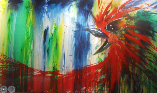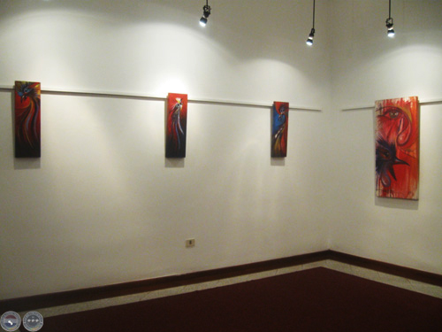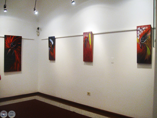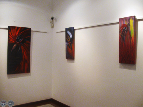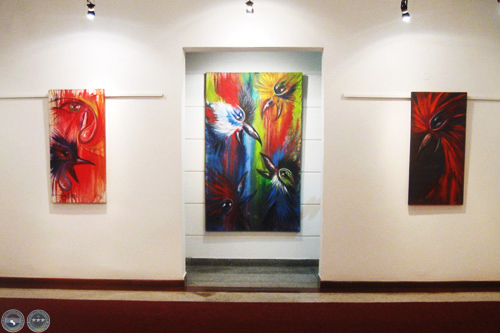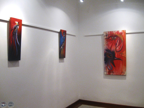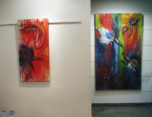 Sapukai reúne más de 15 obras, de mediano y gran formato, realizadas con pintura acrílica y sintética, técnica mixta, con colores "fuertes y contrastantes, contundentes", comenta su autor.
