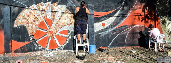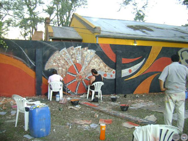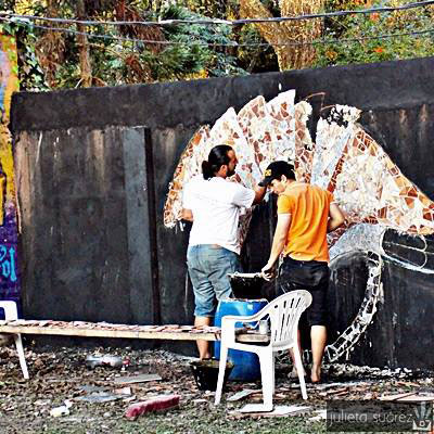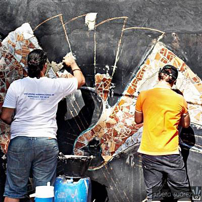 lo realice en técnica mixta, (mosaico, cemento directo y esgrafiado)”