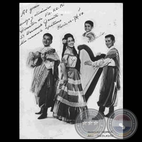 Foto derecha: Conjunto "Paraguay Tropical". de izq. a der. Isidro Caballero, Pura Aguero Vera, Nicolás Caballero y Pablo Morel.