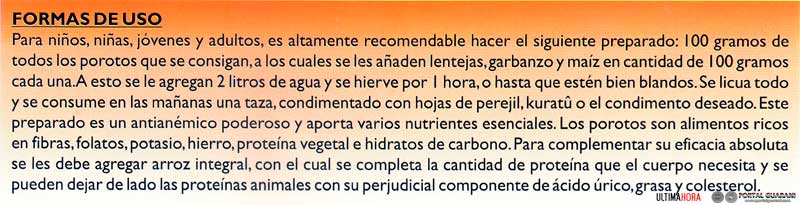 En nuestro país de antaño era famoso el "kumanda pytâ rykue enserenado", el caldo del poroto rojo que amanecía en el sereno y se les daba a los niños en edad escolar, en ayunas.