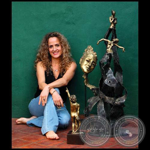Es una artista que propone un mundo intangible a través de la escultura. La temática en sus obras se plasma en la figura humana, las formas abstractas y los elementos en proceso de transformación. El bronce, hierro y marmolina son los elementos con los que materializa sus ideas. Nace en Asunción (Paraguay) en 1975. Descendiente de inmigrantes españoles y alemanes, creció en un entorno multicultural, algo que despertó en ella un gran interés por transmitir sus experiencias valiéndose del arte. Desde pequeña, nació su vocación por la creación y la expresión artística. Su inclinación por las artes la lleva a explorar la tridimensionalidad de las formas con la cerámica, así como la plasticidad de su propio cuerpo con la danza moderna. En lo que a la escultura respecta, en sus primeras piezas conjuga ambas pasiones, creando figuras danzantes de cerámica. Con estas piezas fue explorando la estética de las líneas humanas. Pronto empezó a buscar nuevos materiales que le permitieran plasmar mejor el movimiento en las figuras. Así, guiada por los maestros Hermann Guggiari y Gustavo Beckelmann incursiona en la técnica del bronce como un medio más expresivo para su trabajo. Su formación académica se dio en el Instituto Superior de Artes de la Universidad Nacional de Asunción, Paraguay. Paralelamente, trabaja dentro del ambiente de las artes escénicas, diseñando escenografías, utilería, vestuario y máscaras para espectáculos de teatro y danza; integrando el diseño, la ilustración y la escultura. También realiza ilustraciones artísticas para libros y afiches y se dedica a la docencia de artes en distintas instituciones.