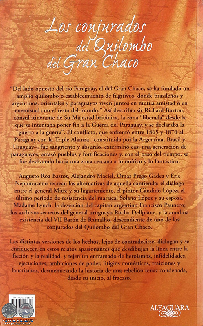 Entrando en el siglo XXI, cuatro autores de las cuatro naciones que se vieron envueltas en ese conflicto volvemos a escribir -como lo hizo sir Richard Francis Burton- las crónicas de una guerra que se azuza con el asesinato de dos presidentes (Venancio Flores de la Banda Oriental en 1868, y Francisco Solano López del Paraguay en 1870) y en la que oscuros intereses sobrevuelan como buitres los cadáveres de nacionalismos convertidos en fanatismos suicidas. Sir Richard se perdió en el espacio, las pampas y los pantanos extraños a su Inglaterra reina de los mares. Nosotros estamos perdidos en el tiempo y esa errabundia de las escrituras es al mismo tiempo virtud y defecto. Más fácil que hacer la historia de los hechos (no somos historiadores) es historiar lo deshecho. La guerra exterminó casi una generación de paraguayos, arrasó pueblos, fortificaciones e hipotecó el futuro de la arruinada nación. Hasta hoy no hay un argumento racional para explicar cuál fue el casus belli. El Paraguay se convirtió en el pandemónium de Milton, tal vez por eso el brigadier general y comandante del Ejército Aliado, Bartolomé Mitre, empezó a traducir el “Infierno” de la Commedia en su tienda de campaña.