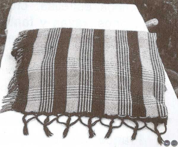 Este tejido que se obtiene directamente con la trama y las distintas combinaciones de los hilos en colores, sólo se registró la producción por una sola persona, y da un tejido muy original, vistoso y de excelente calidad. Al tener cuatro lisos el telar también tiene 4 pedales.