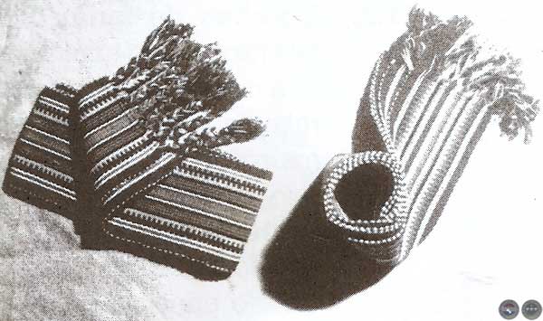 Antiguamente era confeccionado con hilos de lana elaborados totalmente a mano. Hasta el presente se puede adquirir una de estas prendas que generalmente es de color crudo con listones negros, marrones o rojos.