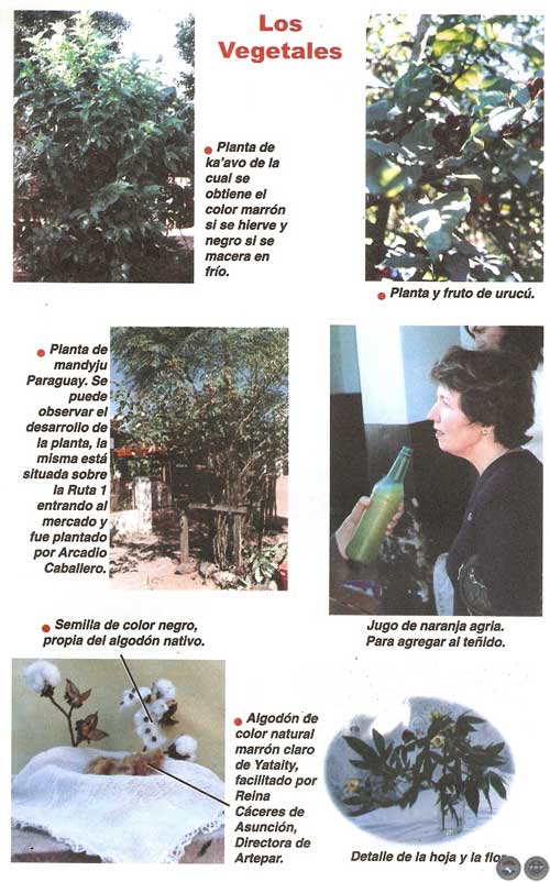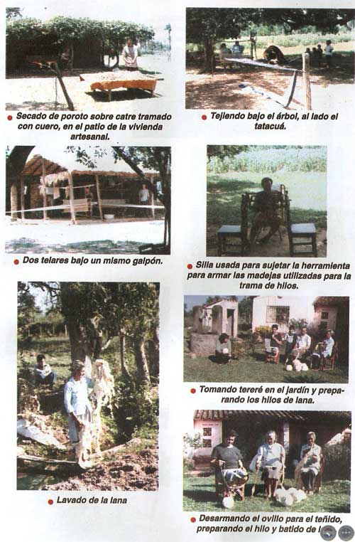 1.1. Mbokaja o cocotero. Con los hilos obtenidos de las hojas y del racimo que sostiene el fruto se producían: piolas, hamacas, vyrapa, honda, arco, cinchas, bolsos, cintos, chalecos y ñanduti.