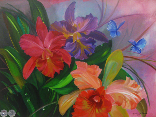 Composición de orquídeas, acrílico sobre lienzo