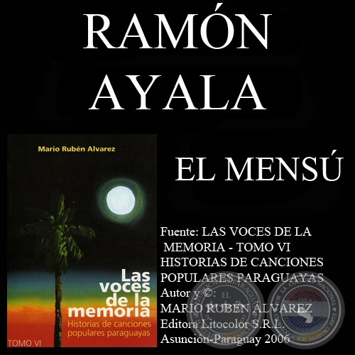 Fuente: LAS VOCES DE LA MEMORIA TOMO VI - HISTORIAS DE CANCIONES POPULARES PARAGUAYAS. Autor y ©: MARIO RUBÉN ÁLVAREZ. Edición del autor y Julián Navarro Vera. Dibujo de tapa: “MBOKAJA HA’EÑO”, Óleo de CAMILA FRETES GÓMEZ. Diseño de tapa: JOSÉ ALFREDO BENÍTEZ. Editora Litocolor S.R.L. Asunción-Paraguay 2006