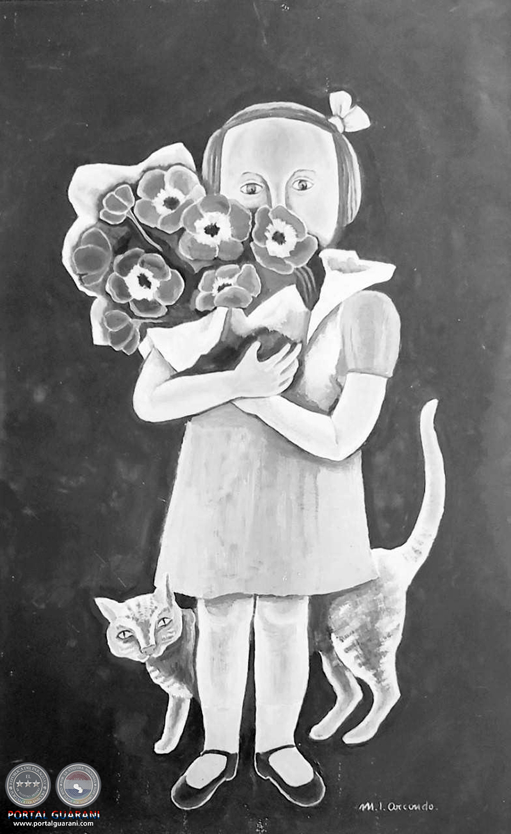 “Niña con gato”. Olga Blinder. Asunción 1959. Colección Galería Exaedro.