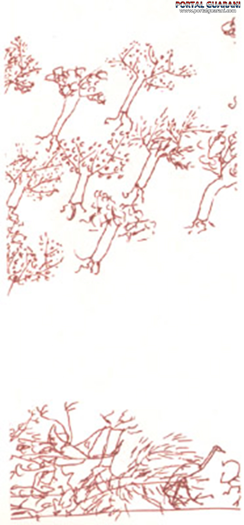 Año tras año tenemos que aguantarlos, protesta un lapacho amarillo. Nos despojan de nuestros amigos, se queja el timbó, vertiendo un agua espesa. Nos arrebatan la sombra, se rebela un tarumá. Desbaratan las colmenas. Ultrajan el perfume. Silencian el murmullo que nos habita.
