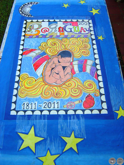 Intervención urbana con Banderas de Gente de Arte, en la que más de 50 artistas plásticos contemporáneos presentaron 100 banderas inspiradas en el Bicentenario de la patria. La Instalación engalanó el Palacio de Gobierno para los festejos del Bicentenario con estas 100 obras de arte.