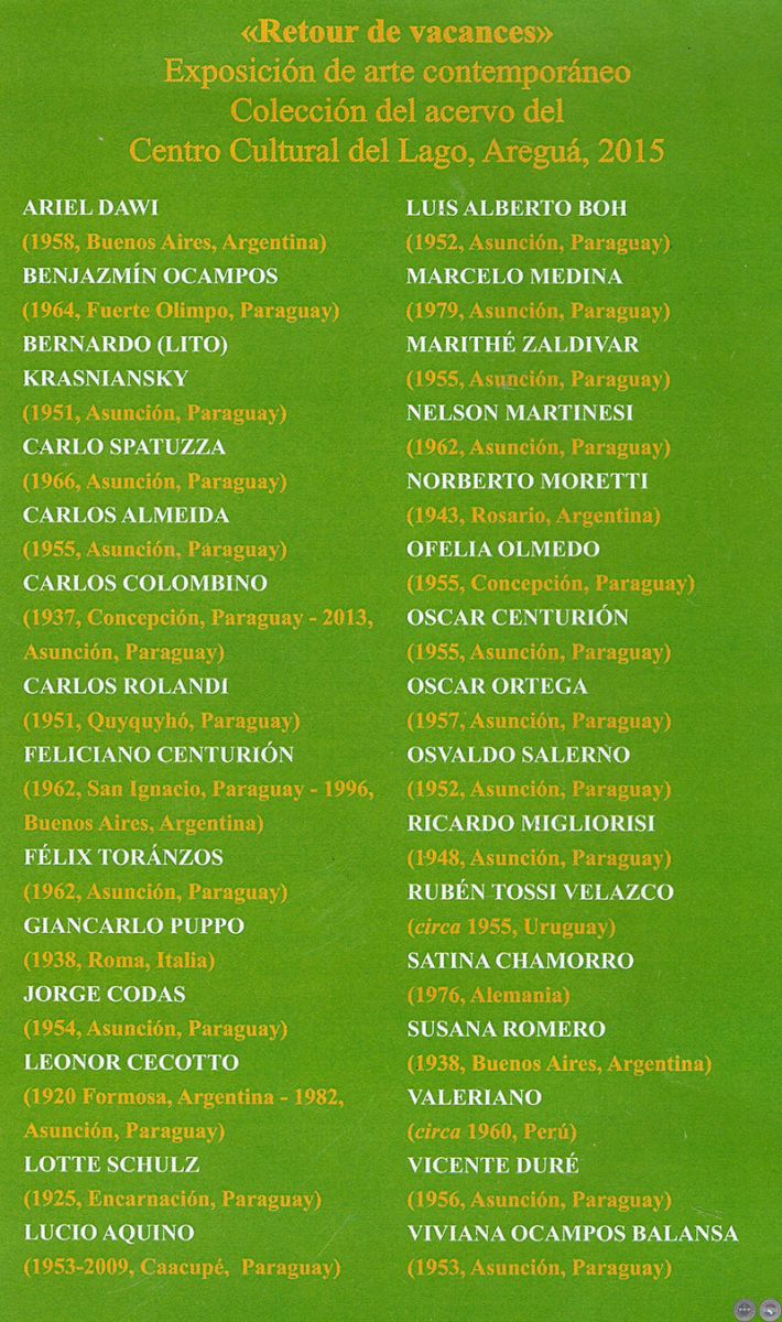 Entre los artistas cuyas obras se encuentran en exhibición en la muestra “Retour de vacances”, Luis Alberto Boh, Nelson Martinesi, Ofelia Olmedo, Carlos Rolandi, Vicente Duré, Carlo Spatuzza y Marithé Zaldívar no solo siguen produciendo, sino que también transmiten sus conocimientos a través de la docencia.