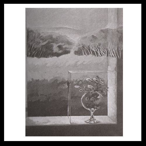 En la pintura que comentamos, las transparencias, la simultaneidad de diferentes dimensiones y la superposición de imágenes alteran las relaciones dentro/fuera y figura/fondo e instauran un espacio equívoco: la ventana abierta al paisaje deja de funcionar como una mediadora entre lo interno y lo externo, como símbolo de la frontera entre el espectador y el objeto, entre la realidad y la conciencia, y se diluye en los árboles o se pierde en el cielo convertida en mera línea trazada en el vacío. Pero, plantado sobre el alféizar, el vaso de cristal con flores desmiente la inmaterialidad de la ventana y supone un nuevo espacio hermético y sin salida. Aisladas, las flores son ahora signos de un universo físico al que ya no pertenecen. En vano tratará la libélula de llegar hasta ellas; atrapadas por el hombre, convertidas en naturaleza muerta, en imagen, han ingresado en el orden cerrado del discurso.