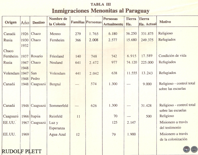 Unruh, John D. In the Name of Christ. Scottdale: Herald Press, 1952. Vasconsellos, Victorio Natalicio. Lecciones de Historia Paraguaya. Asuncion: Campos e Imprimiu, 1959.