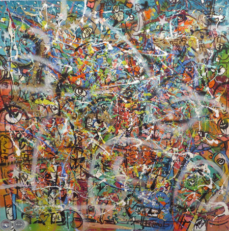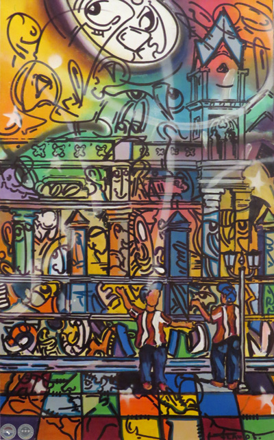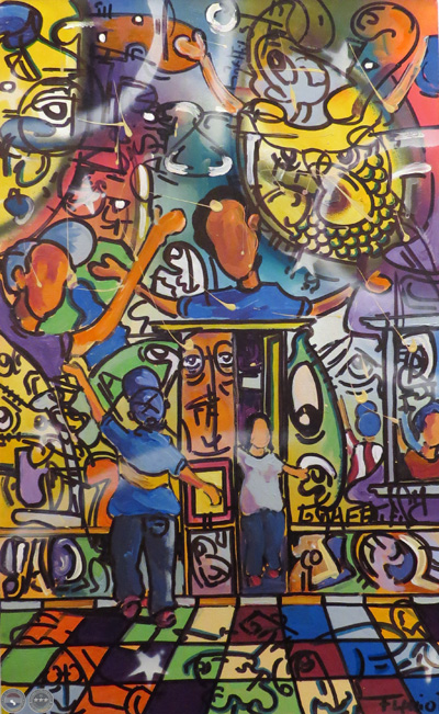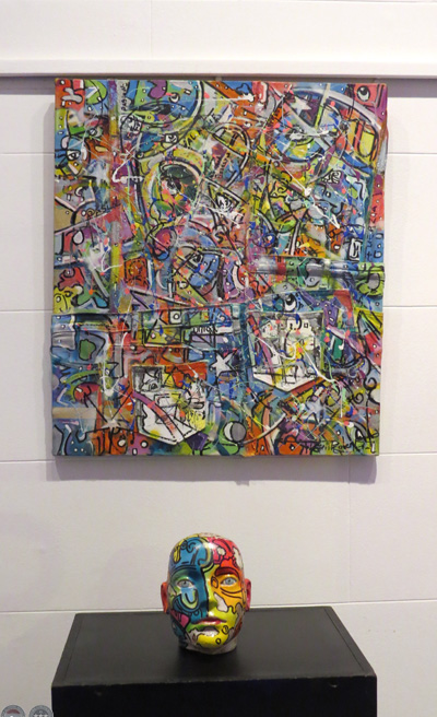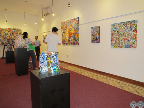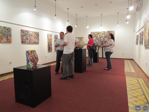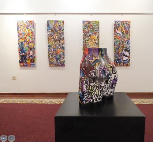 En esta muestra pueden apreciarse pinturas, objetos como cántaros, zapatos, maniquíes que fueron intervenidos por el artista y a los cuales confiere su estilo muy peculiar caracterizado por trazos gestuales, colores vibrantes, y caricaturas de personajes de nuestra cultura.