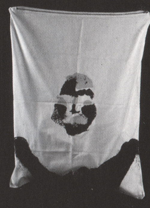 Desde ya, la instalación ROPA SUCIA (Ropa sucia, 1995, copia serigráfica sobre funda de algodón, 40 x 70 cm. (cada parte).) trabaja sobre la acepción de Escobar. Aquí, la impresión de las copias serigráficas del rostro del artista en fundas de almohada forman una secuencia apenas alterada por una funda blanca entre ellas. La ausencia de la impresión obliga a pensar nuevamente en lo mesiánico. Podemos ver el blando volumen de la funda, pero desearíamos ver el cuerpo Resurrecto. La idea del militante político como mártir, por el sufrimiento y redención igual a Cristo, es un tópico del arte latinoamericano (36). La idea de poner el cuerpo propio -que, estrictamente, no deja de constituir un autorretrato- potencia el aspecto político de la obra. En EL SILUETAZO DE LAS MADRES DE PLAZA DE MAYO EN LA ARGENTINA (1983), el manifestante colocaba su cuerpo sobre el papel para indicar el contorno de la silueta del detenido-desaparecido (37) Poner el cuerpo por el otro. En el caso de Salerno: su cuerpo se torna universal bajo un estado totalitario y pierde en la lectura política la validez de cualquier consideración individual (es decir su característica de autorretrato).