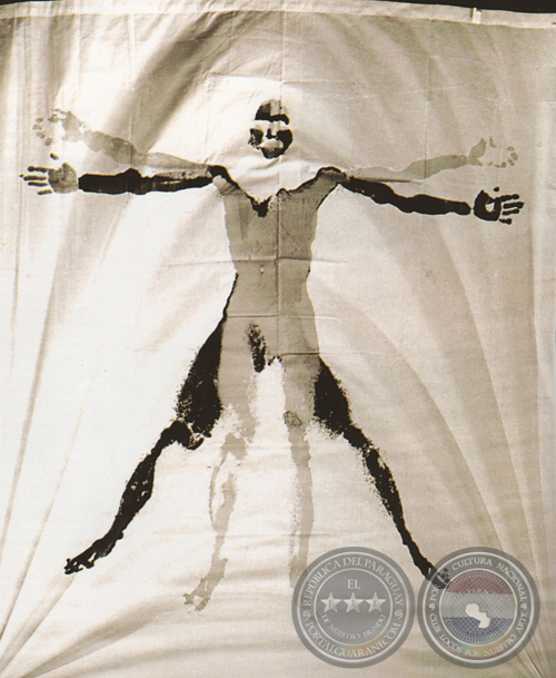 Por otra parte, la sábana impresa obliga a pensar en la Sábana Santa de Turín, por ello, la genealogía de esta instalación puede rastrearse en el imaginario cristiano. Asombra, en este sentido, el texto escrito por Ticio Escobar sobre las primeras impresiones corporales, por su similitud con una descripción de la Pasión patética: