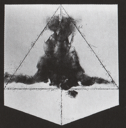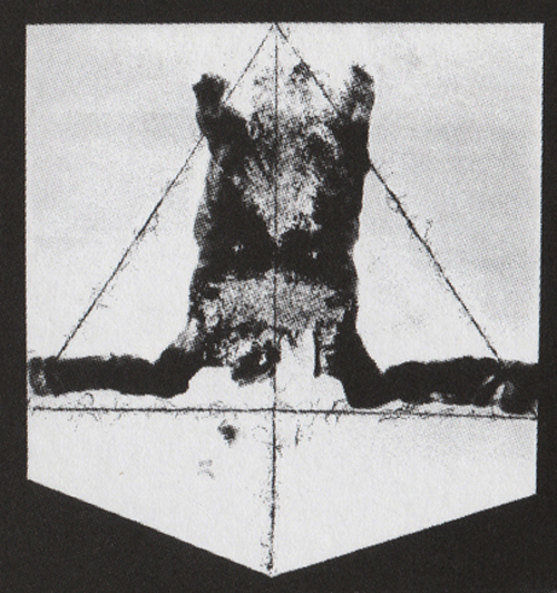 El díptico ANVERSO Y REVERSO se basa en la impresión directa del cuerpo del artista. Estampado sobre el papel, el hombre se convierte en una huella de sí, se objetiva en señal, en marca; cae preso de su propio discurso. Al ser representado de frente y de atrás, el torso adquiere el sentido de objeto exhibido y marcado, de registro dactilar; connota el procedimiento de identificación de los documentos personales o los prontuarios (aunque el rostro, sede misma de la identidad, esté borrado). La imagen, invertida, tiene un sentido violento, sugiere una afrenta a la posición propia del hombre, recuerda el modo de suspender las reses o de colgar a los torturados durante ciertos interrogatorios. Por otra parte, este fuerte dramatismo aparece enfrentado a un elemento racional, un intento ordenador. Las figuras geométricas -aunque, formadas por sogas, también aludan a una situación opresiva- funcionan como estructuras conceptuales o como esquemas de cálculo o trazado que tratan de pautar y dominar el material desordenado de la existencia concreta. Pero esas figuras no expresan sólo el sueño de la pura forma directriz impuesta sobre el contenido turbio; significan, además, la posibilidad que tiene el hombre de oponer un nuevo designio a cada situación. Limitado como pura facticidad corporal, sometido a vejámenes, cosificado, él es capaz aún de indicar una dirección, de trazar un proyecto de rebelarse, de volver a alzarse como sujeto.