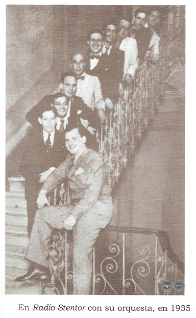 Estamos en el amplio salón auditorio de Radio Sténtor. Luces, luces. Finas siluetas que cruzan de uno a otro lado de los grandes ventanales, tras cuyo doble cristal puede verse a conocidos ases de la melodía popular. Frente a nosotros está Edgardo Donato dirigiendo su popular orquesta típica, de cierto una de las mejores en su género. En estos momentos termina su audición con las alegres y ruidosas notas de un tango cómico que firma el mismo Donato, «La caída de la estantería».