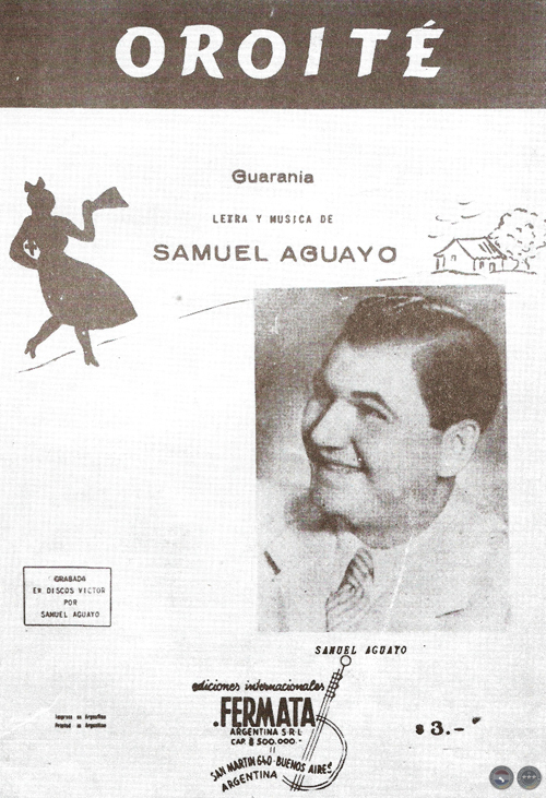 Cuando el público bonaerense admiraba a Carlos Gardel, Ángel Vargas, Mercedes Simone y a otros grandes, un joven paraguayo le hizo escuchar polcas y guaranias. A pesar de la dificultad que significaba el idioma guaraní, la música era tan dulce y melodiosa que su intérprete, Samuel Aguayo, se convirtió en uno de los más mimados del público porteño. Fue el pionero y reinó por años en radios y fiestas.