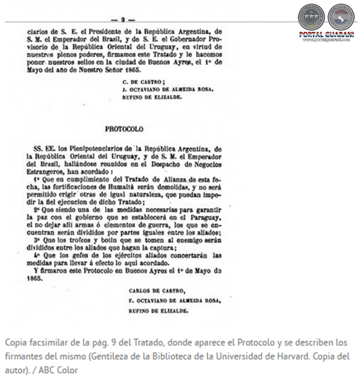 Y ciertamente, 4 años y 10 meses después de la firma del infame Tratado con el que fueron responsables de uno de los episodios más sangrientos del siglo XIX, Argentina, Brasil y Uruguay acababan la guerra con la muerte del mariscal Francisco Solano López y la exterminación de gran parte de la población paraguaya en fecha 1 de marzo de 1870, dando así cumplimiento a la letra del documento mencionado y la intención de sus firmantes.