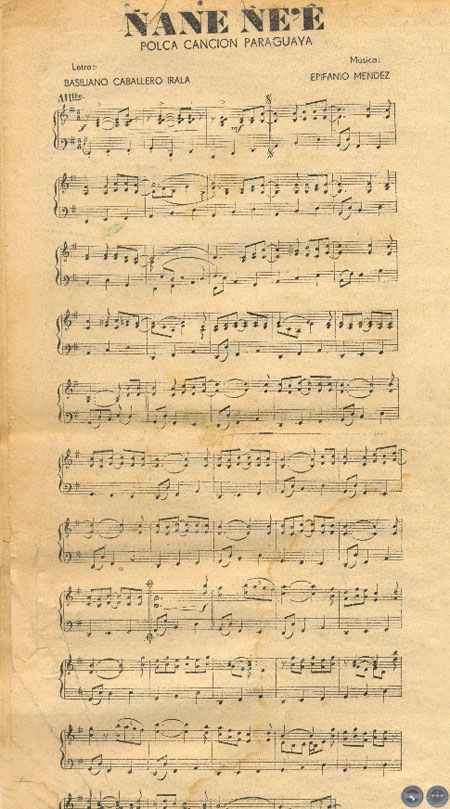 Partitura de la polca “Ñane Ñe’ê”, de Méndez Fleitas,