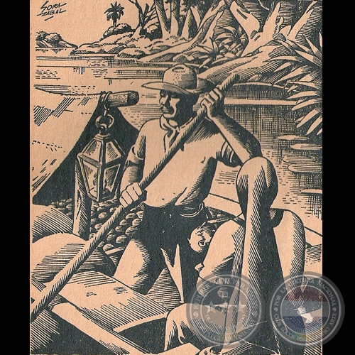 UNA ANÉCDORA - "Hay entre sus trabajos que apareció en la carátula de la revista "Paraguay", que se publicaba en Buenos Aires, uno que nos agrada distinguir ... Se le hizo difícil encontrar la denominación precisa de la obra a medio terminar: "Empecé con el propósito de dibujar unos embarcadizos (tripulantes) y he hecho esto. Nunca me pasó algo semejante, pues siempre tengo el título al comenzar el trabajo", nos dijo al tiempo que nos mostraba el dibujo en el que se veía un bote repleto de productos de la tierra con un hombre remando río arriba, en compañía de su mujer e hijo, y como fondo un paisaje exuberante. Admiraba a esta gente trashumante que "pasa la vida navegando, por la aventura que encierra ese existencia en perenne tránsito".-