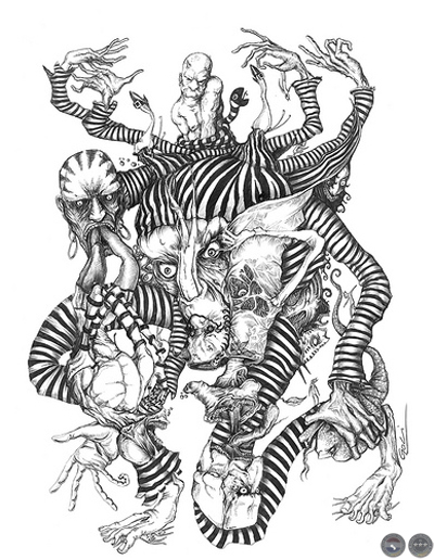 La misma pregunta se hacen estos 26 ilustradores y buscando una respuesta (o varias) deciden explorar sus respectivas pinacotecas mentales vertidas en un soporte que no solo aguanta todo, si no que permite la combinación, la mezcla y el apareamiento de las más diversas técnicas para generar imaginarios que evocan la mitología, seres repentinos y costumbres de todo aquello visto y repetido en el entorno, como ritual espontáneo y de orden oculto.