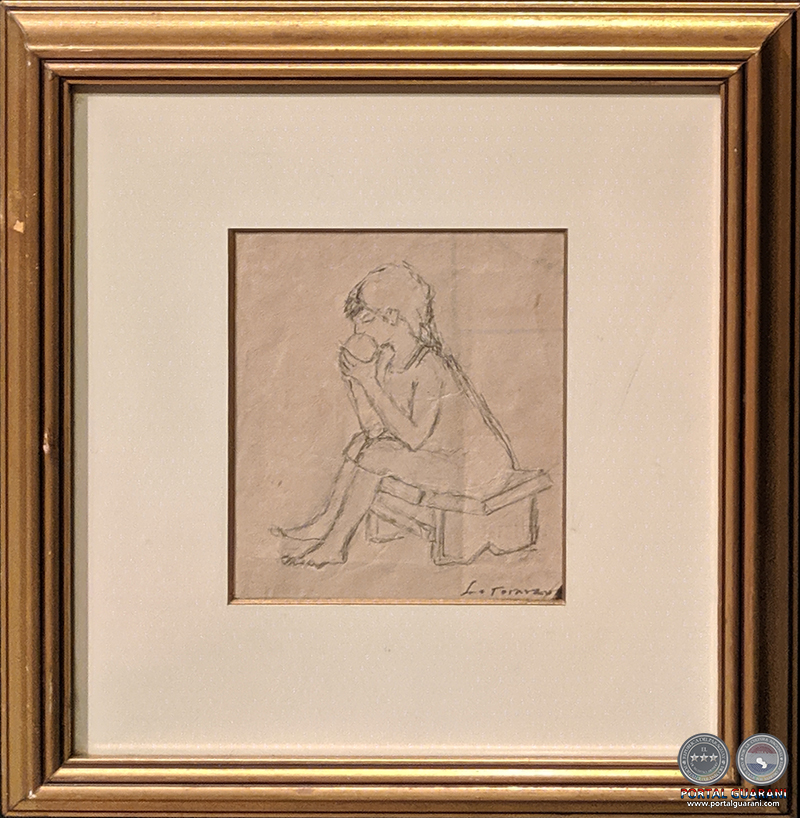 como lo hace Toranzos con esta niña que, sentada en un tradicional apyka'i,