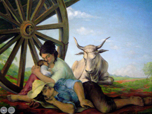Ocupándose en algunas obras de documentar el cotidiano de las clases rurales y urbanas, el artista intentó desarrollar en sus personajes aspectos interiores de la condición humana, en su atávico destino ligado al trabajo. Las figuras de obreros, madres y agricultores ocupan desmesuradamente lugares centrales en la composición, aún sobre la perspectiva del paisaje natural o artificial-urbano.